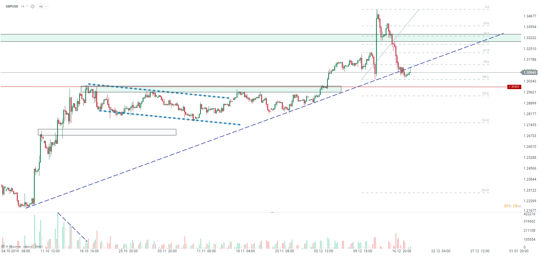 Sprzedaż bazowa cofa się jeszcze mocniej o 0,6% m/m przy konsensusie 0,3% m/m na plusie oraz przy poprzednim spadku 0,3% m/m. W ujęciu rocznym sprzedaż bazowa wzrosła o 0,8% r/r przy założeniu wzrostu na poziomie 1,9% r/r oraz przy poprzednim wzroście 2,7% r/r. Dane te nie wróżą nic dobrego dla wzrostu PKB w IV kwartale tego roku. Funt wyraźnie cofa się po publikacji, ograniczając wzrosty z dzisiejszego dnia. Warto pamiętać, że dzisiaj o 13 publikacja decyzji BoE. Kluczowe mogą być komentarze dotyczące Brexitu i ewentualnych ruchów na stopach procentowych w związku ze zmniejszeniem się niepewności.