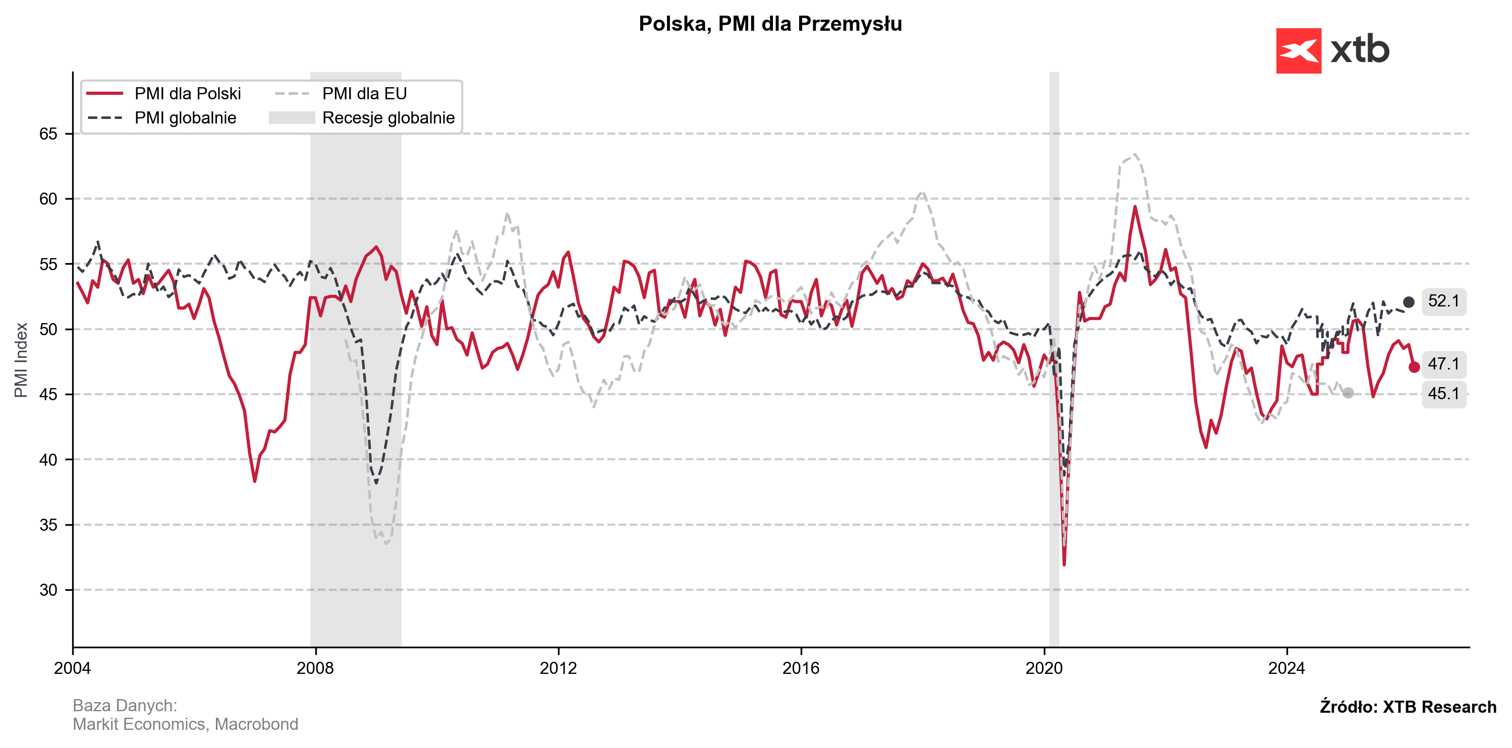 Lutowy odczyt PMI sygnalizuje ponowne pogorszenie koniunktury w przemyśle po kilku miesiącach stopniowego zbliżania się do progu 50 pkt; to 10. z rzędu miesiąc poniżej 50, czyli w strefie spadkowej.