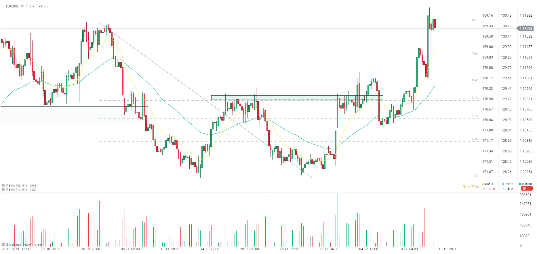 Dane te są wyraźnie słabe i wskazują na to, że poprawa wydatków u konsumentów jest raczej ograniczona. Warto zaznaczyć, że wysokie oczekiwania mogły być związane z przedświątecznymi zakupami w postaci "Black Friday" czy "Cyber Monday". Mimo słabego odczytu obserwujemy cofnięcie EURUSD z bardzo wywyższonych poziomów. Obecnie obserwujemy cofnięcie poniżej poziomu 1,1170. Dzisiaj jednak zdecydowanie większy wpływ na to, co dzieje się z amerykańskimi oraz globalnymi aktywami mają wieści dotyczące negocjacji handlowych między Chinami oraz USA.