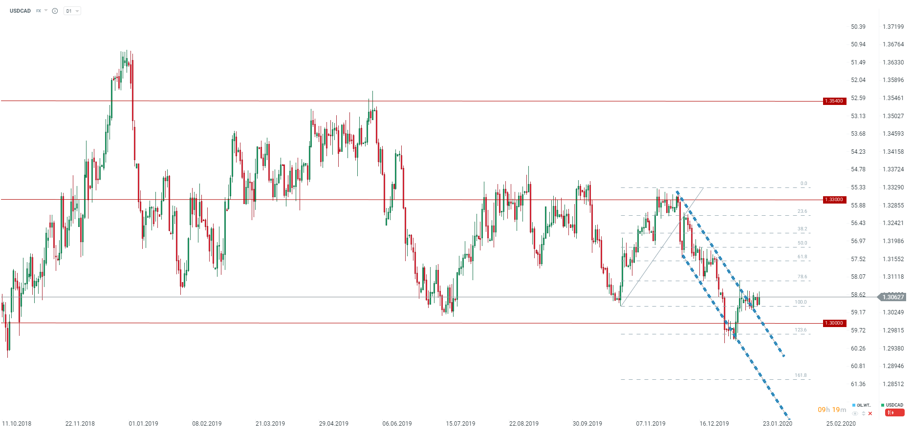 USDCAD odbija po publikacji słabych danych z Kanady. Kolejne dane wskazujące na pogorszenie się sytuacji konsumentów mogą zmusić bank centralny do obniżki stóp procentowych. Źródło: xStation5
