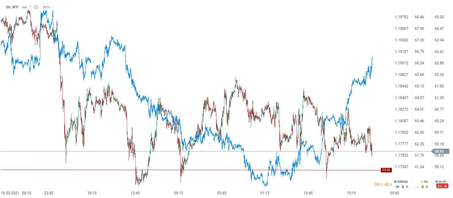 Jak widać ropa reaguje spadkami po raporcie. Co ciekawe dolar traci w ostatnim czasie, co może być pozytywnym czynnikiem dla ropy i innych surowców. Źródło: xStation5