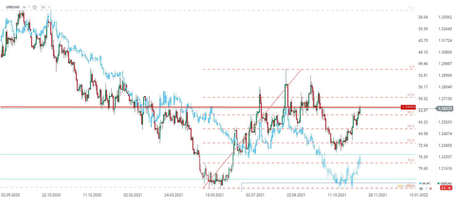 USDCAD znajduje się w kluczowym miejscu. Dolar amerykański jest mocny, a ropa słaba. Jednak jeśli nastąpi kolejna fala pozytywnych wieści dla CADa, nie jest wykluczona obrona tego oporu i próba powrotu do głównego trendu spadkowego. Wydaje się jednak, że kluczowym czynnikiem obecnie jest ropa naftowa.