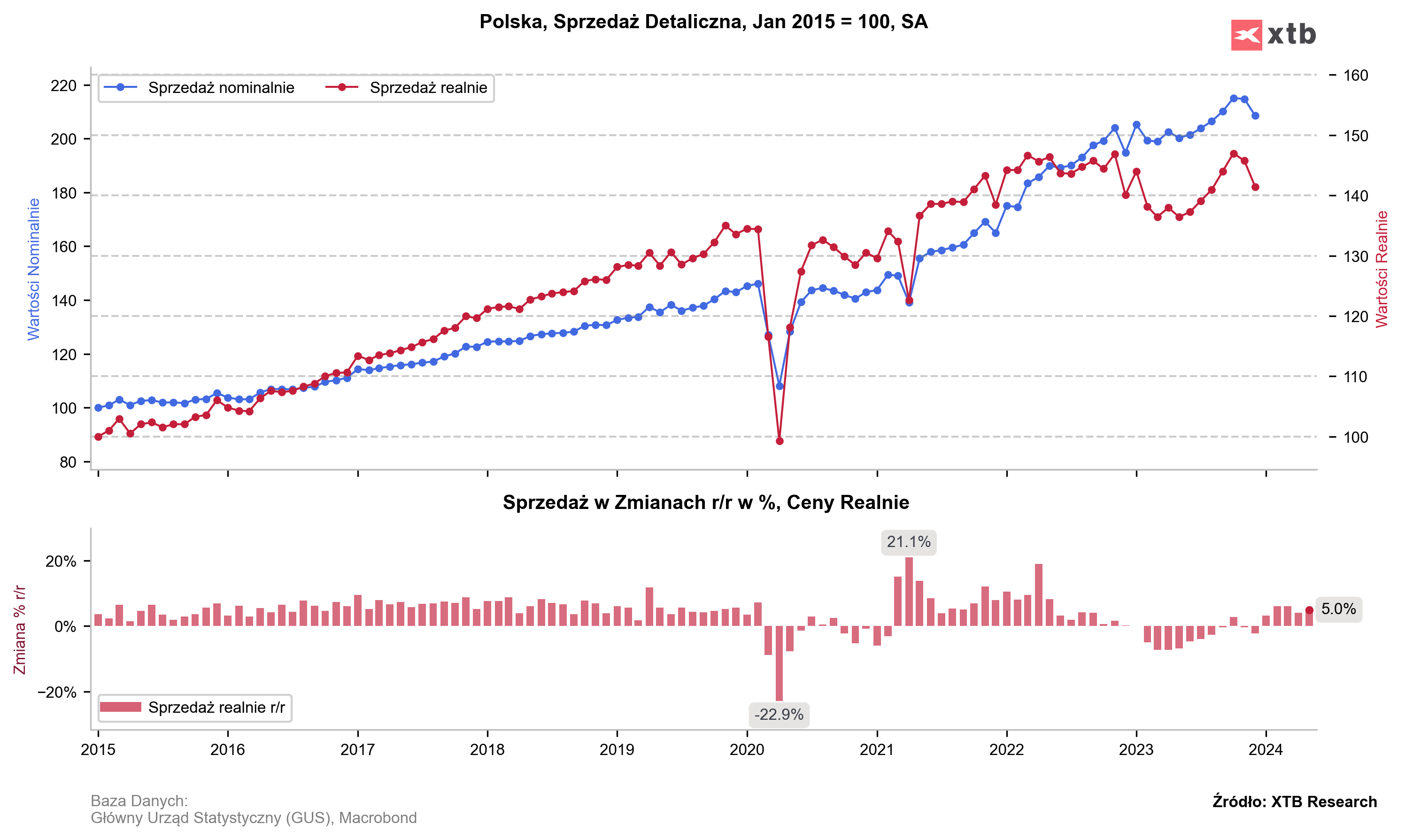 - Polska, sprzedaż detaliczna za maj. Obecnie: 5,4% r/r. Oczekiwane: 5,7% r/r. Poprzednia: 4,3% r/r