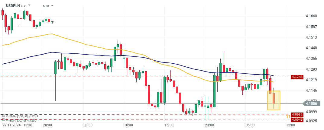 W pierwszej reakcji na dane złoty lekko zyskuje w stosunku do dolara. Źródło: xStation