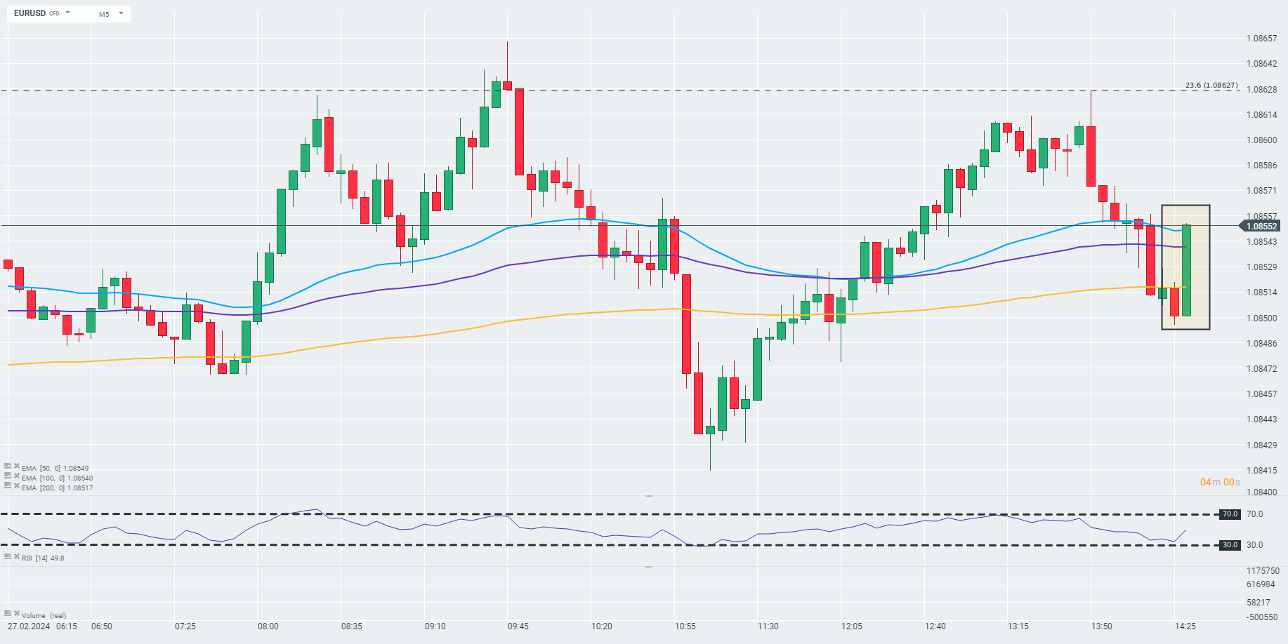 Para EURUSD zyskała po odczycie danych z USA. Źródło: xStation