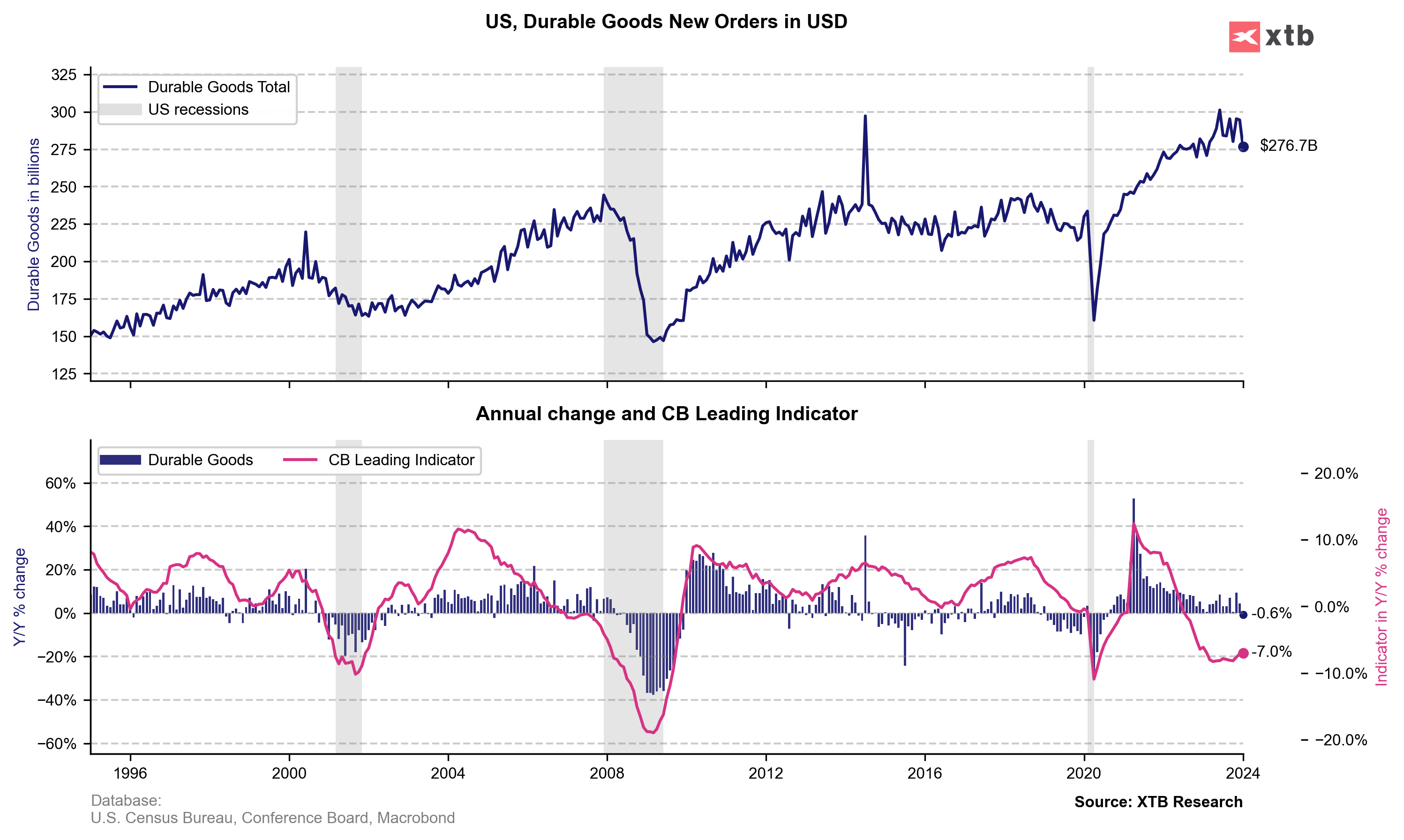 Dla rynków poznane przed chwilą dane makro tworzą gołębi wydźwięk. Gorsze momentum w gospodarce Stanów Zjednoczonych to potencjalnie większa zachęta do szybszych obniżek stóp procentowych, a to bezpośrednio nakłada presją na dolara amerykańskiego.