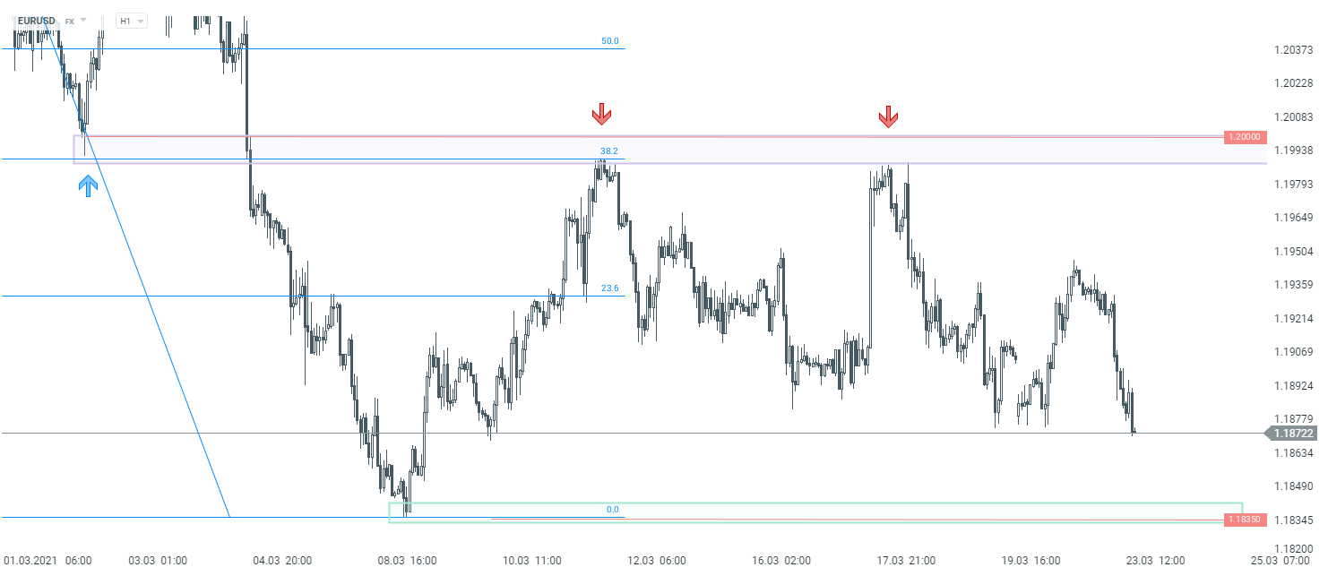 Przed chwilą poznaliśmy dane z USA. Sprzedaż nowych domów w lutym wypadła poniżej oczekiwań rynkowych i wyniosła 775 tys. wobec prognozy na poziomie 870 tys. Poprzedni odczyt został jednak nieznacznie zrewidowany w górę, z 923 tys. do 948 tys. Równocześnie poznaliśmy także wskaźnik Fed z Richmond, który wyniósł 17 pkt, podczas gdy oczekiwano odczytu na poziomie 16 pkt (poprzednio 14 pkt). Tuż po danych obserwujemy kontynuację spadków na parze EURUSD. Patrząc technicznie na wykres H1 , w przypadku utrzymania sentymentu, niewyklucozny jest atak na ostatnie minima przy 1,1835.