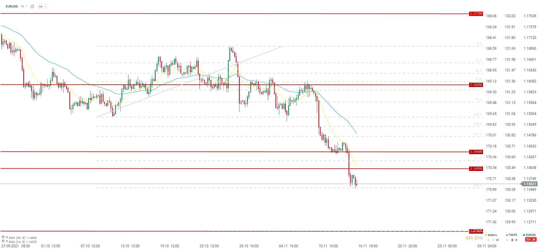 EURUSD kontynuuje drogę na południe po odczycie. Źródło: xStation5