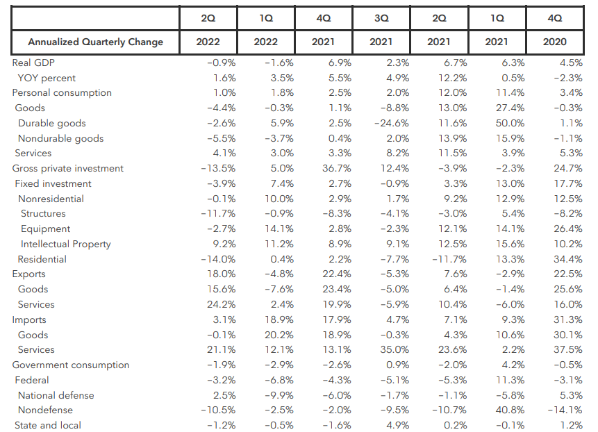 Dzisiejszy odczyt danych z USA ma wydźwięk wyraźnie recesyjny, drugi z rzędu odczyt PKB poniżej kreski rozpoczyna techniczną recesję w USA.