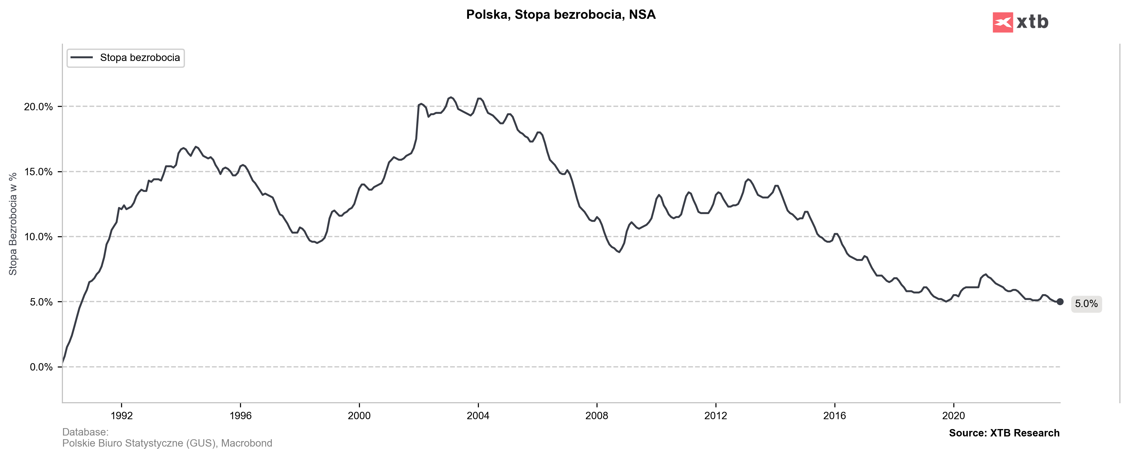 Stopa bezrobocia w lipcu utrzymało się na poziomie 5,0%, co było odczytem zgodnym z oczekiwaniami (poprzednio 5,0%).