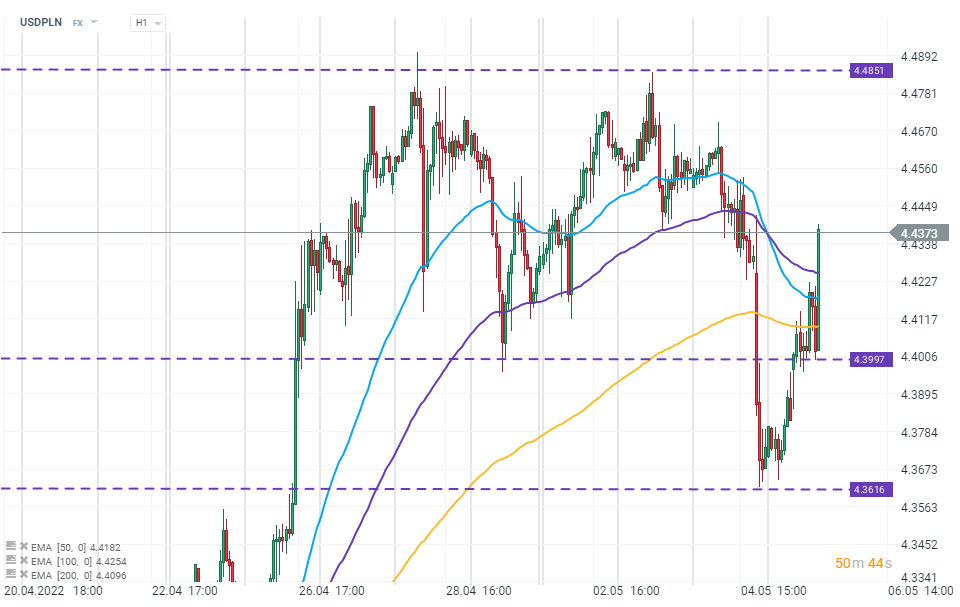 Złotówka osłabia się po podwyżce stóp o 75pb. Źródło: xStation 5