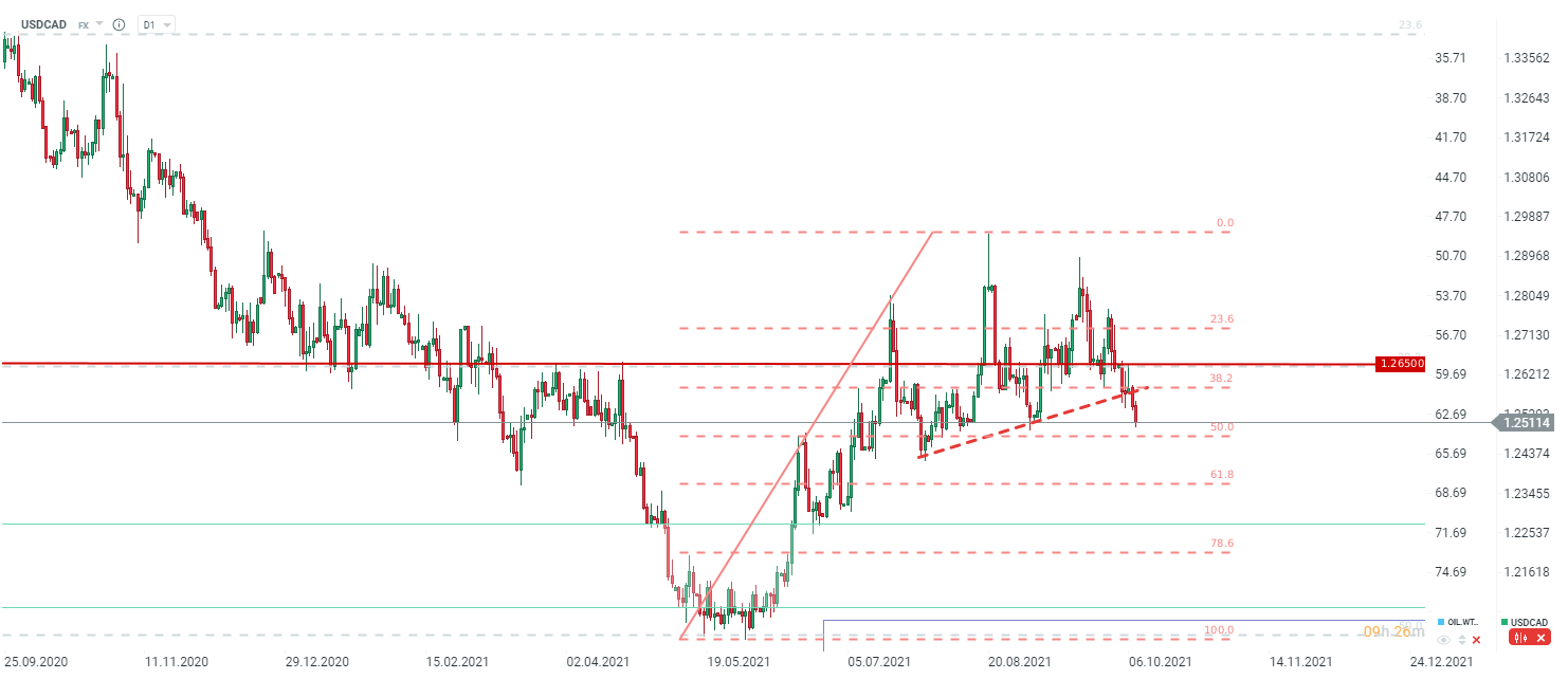 USDCAD powiększa spadki dzięki dobremu miksowi danych z perspektywy Kanady. Źródło: xStation5
