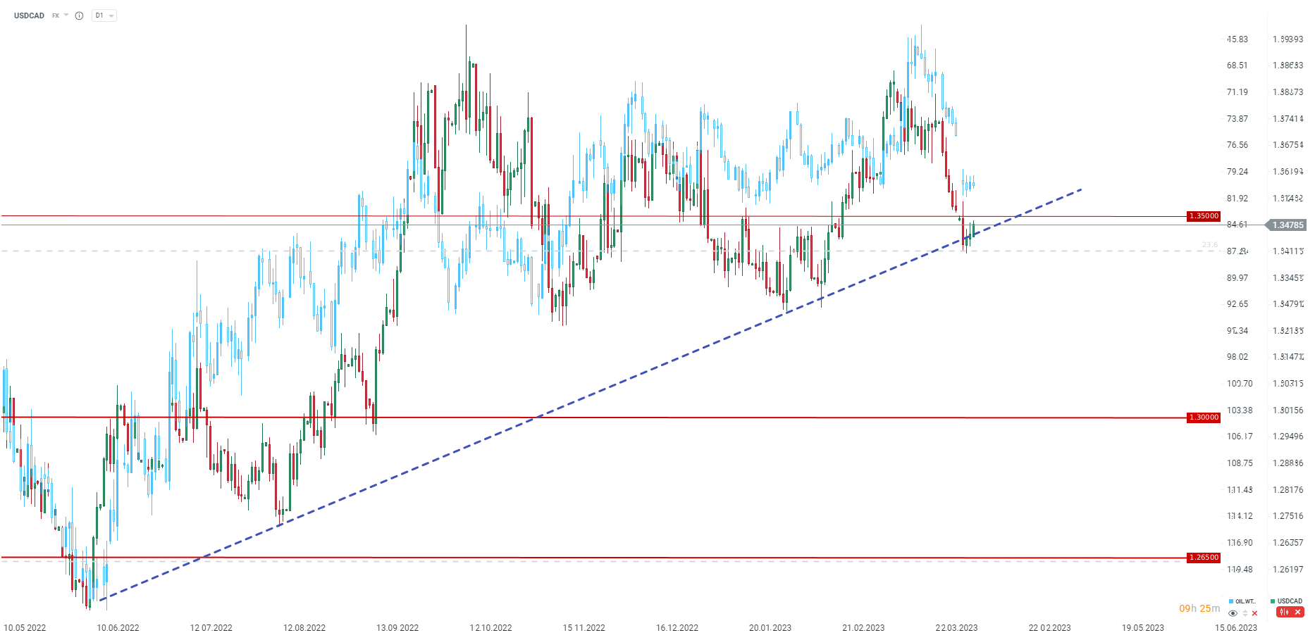 USDCAD odbija z okolic ważnego wsparcia i przymierza się ponownie do testu poziomu 1,3500. Źródło: xStation5