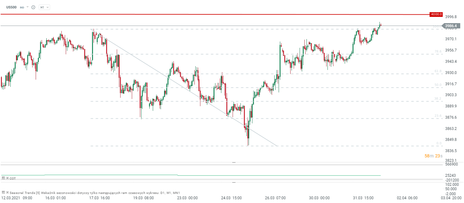Przy tym wszystkim przed publikacją indeks kasowy S&P 500 zaliczył poziom 4000 punktów pierwszy raz w historii. W przypadku kontraktu na ten poziom musimy jeszcze poczekać.