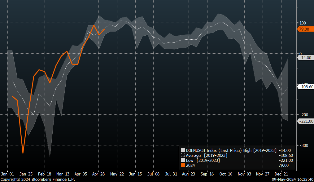Choć wzrost w tym tygodniu okazał się niższy od oczekiwań, wciąż zawiera się w widełkach średnich wahań dla ostatnich 4 lat.