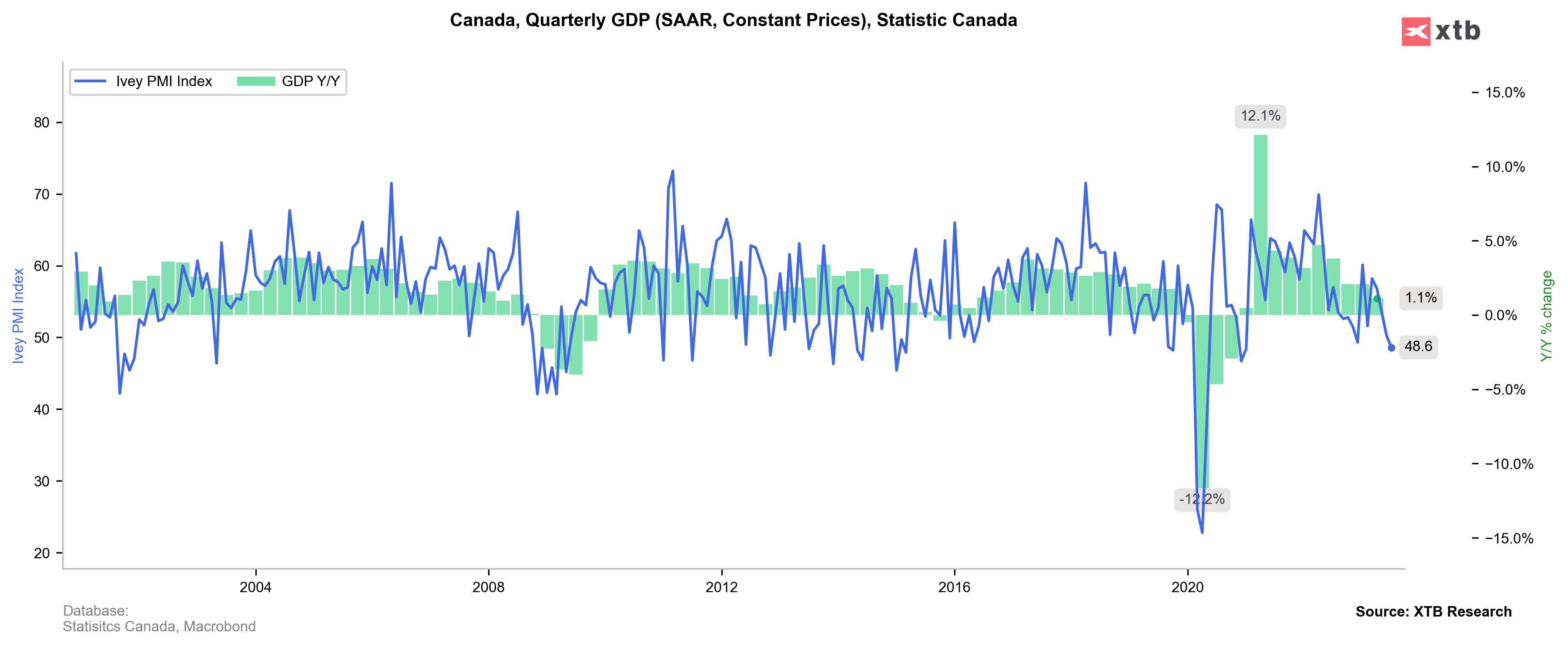 Odczyt PKB Kanady okazał się słabszy niż oczekiwano: