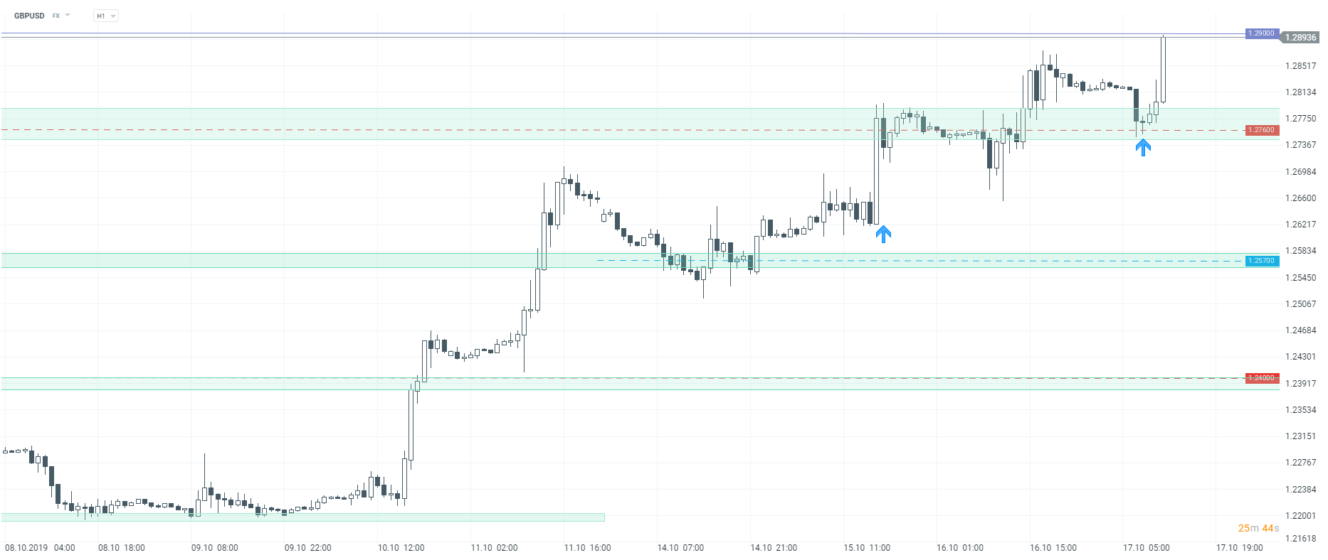 GBPUSD po obronie wsaprcia przy 1,2760 zmierza w keirunku okrągłego poziomu 1,2900. Źródło: xStation5