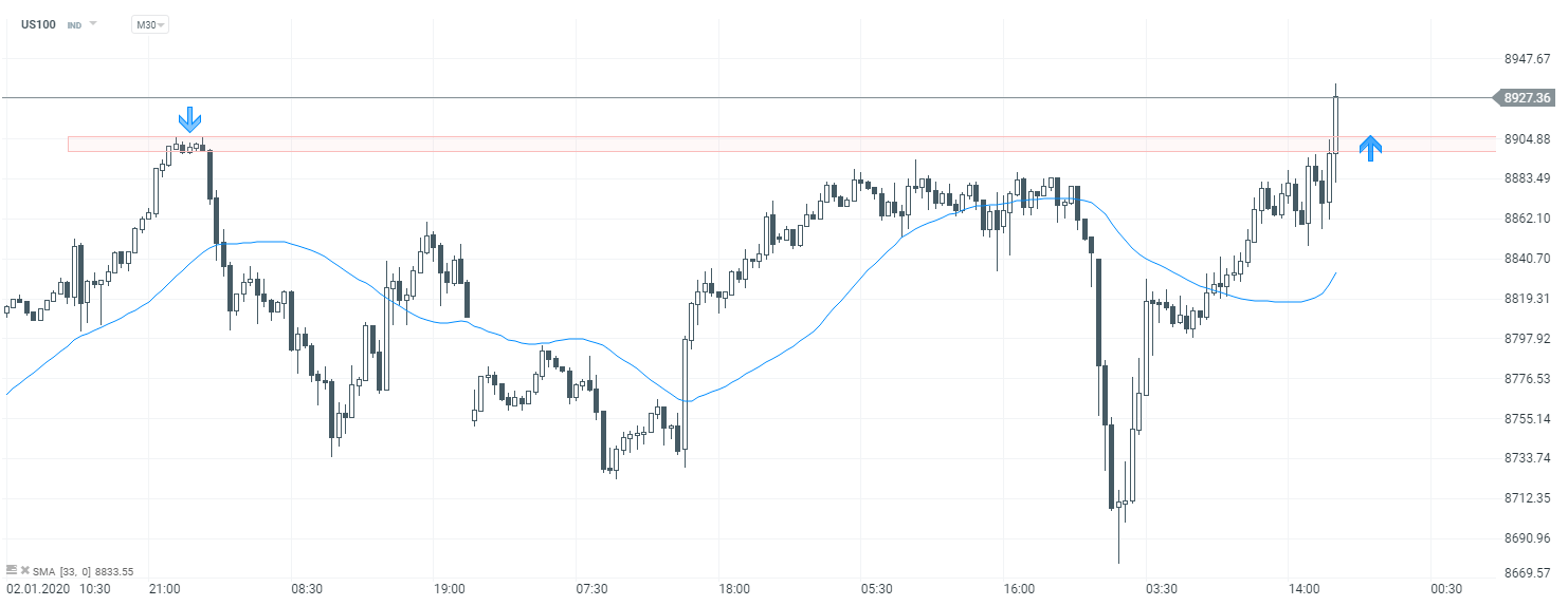 US100 interwał M30. Źródło: xStation5