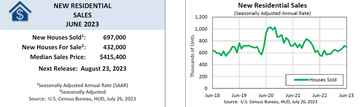Ilość sprzedawanych domów w czerwcu wciąż była solidna mimo wysokich kosztów finansowania długiem i jastrzębiej polotyki Fed. Źródło: US Census Bureau