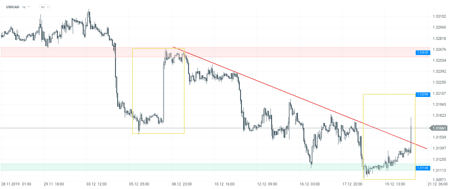 USDCAD interwał H1. Źródło: xStation5