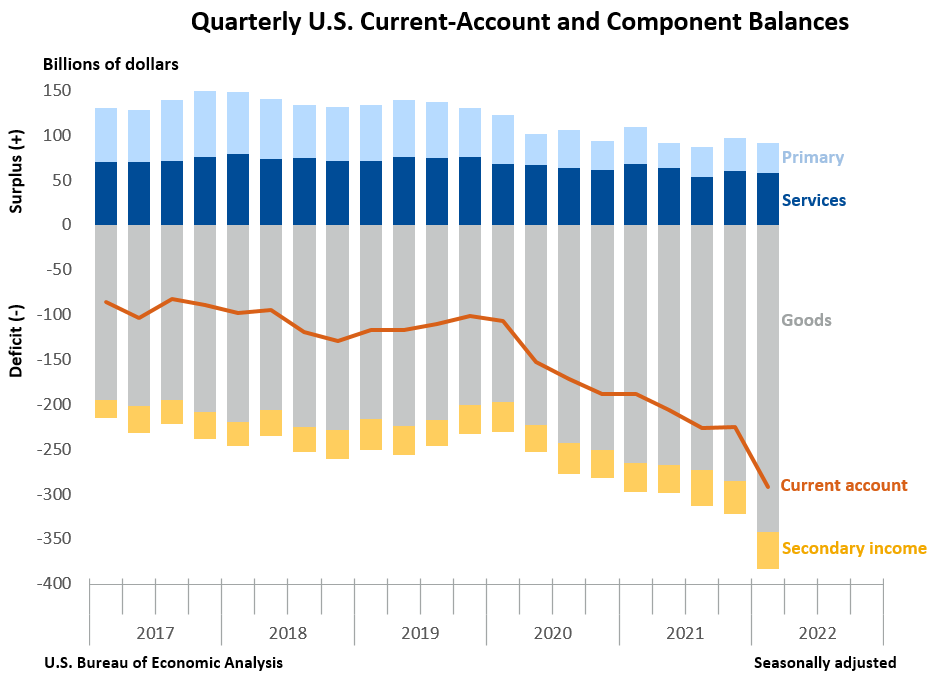 Deficyt bieżący w USA w 1. kwartale 291,42 mld USD, przewidywany deficyt 273,7 mld USD
