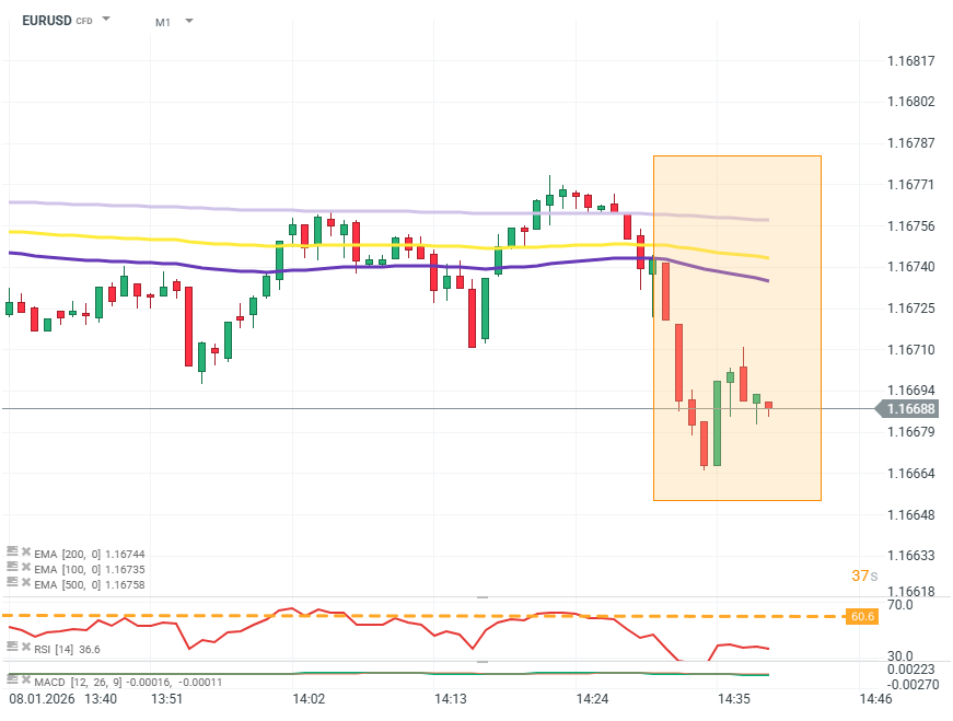Dolar minimalnie umacnia się, co wskazuje na to, że rynki interpretują odczyt jako oznakę siły, a nie słabości gospodarki USA.
