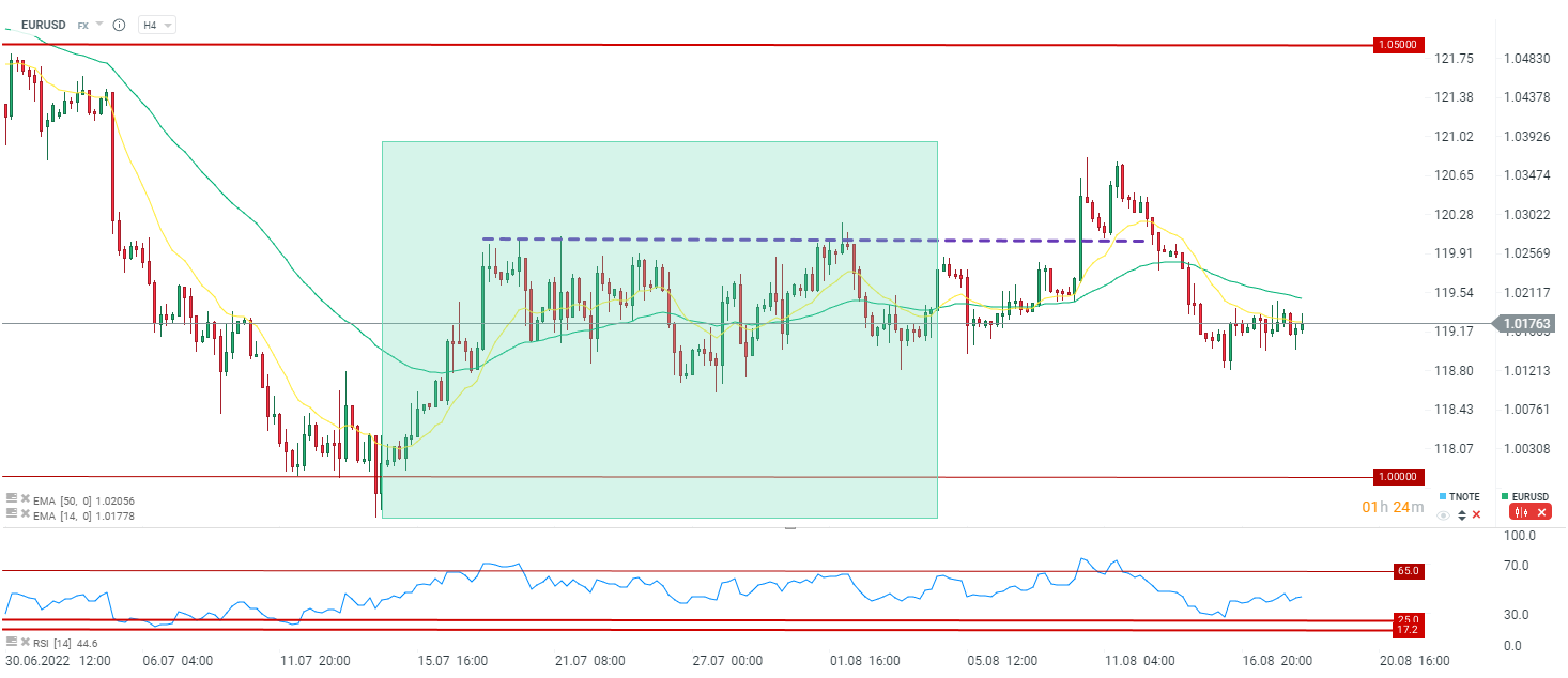 EURUSD redukuje wzrosty. Zmienność na parze pozostaje jednak bardzo mała. Źródło: xStation5