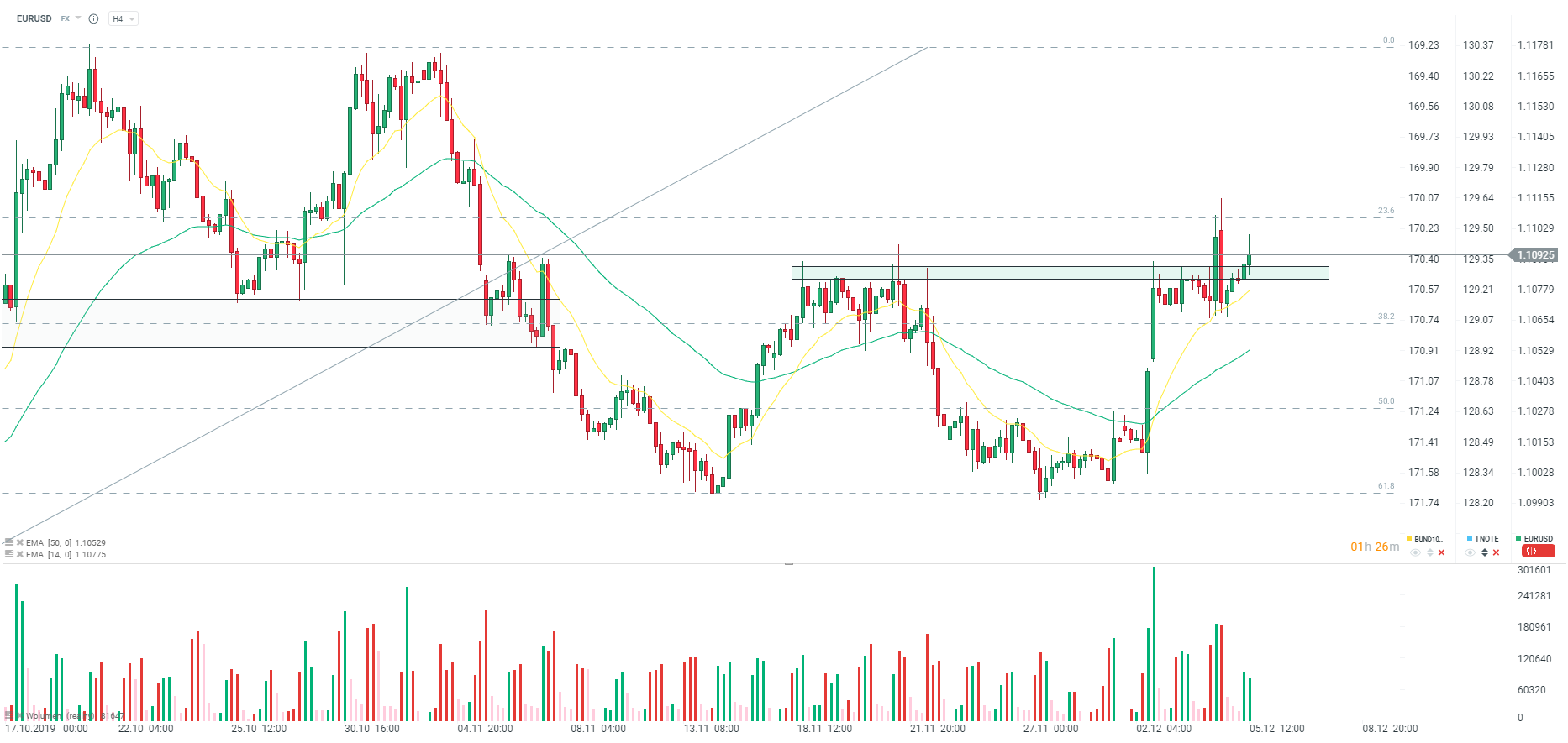 Dodatkowo widać bardzo pozytywne dane dotyczące bilansu handlowego za październik. Deficyt handlowy obniża się aż do 47,2 mld USD przy oczekiwaniu spadku deficytu do 48,7 mld USD. Poprzednio we wrześniu deficyt wyniósł 51,1 mld USD. Niemniej przy niewielkim wzroście eksportu mamy spadek importu, co może świadczyć z jednej strony o ograniczeniu siły konsumentów, choć w tym wypadku trzema raczej mówić o działaniu taryf celnych. Dolar lekko odrabia straty po odczycie, choć para EURUSD znajduje się wciąż blisko poziomu 1,1100.