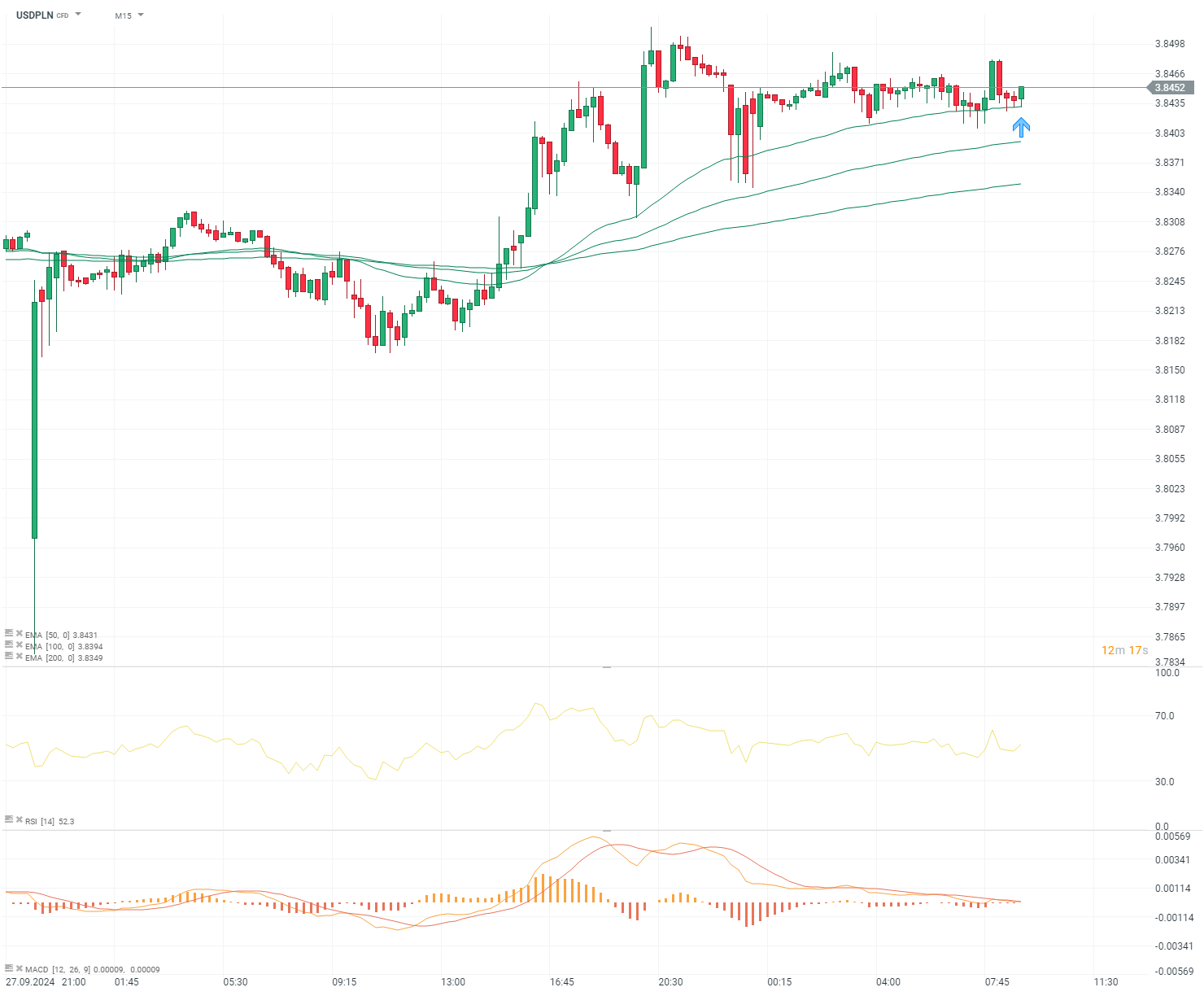 Wskaźnik PMI dla przemysłu za Wrzesień okazał się być wyższy od oczekiwań. Znajduje się on wciąż poniżej 50 pkt., co wskazuje na słabszą koniunkturę. Reakcja na USDPLN pozostawała ograniczona po danych.