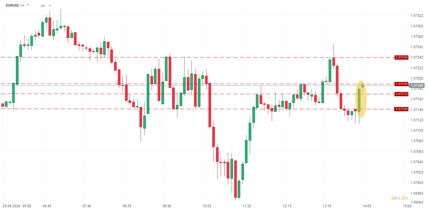 Notowania EURUSD w interwale 5-minutowym. Źródło: xStation
