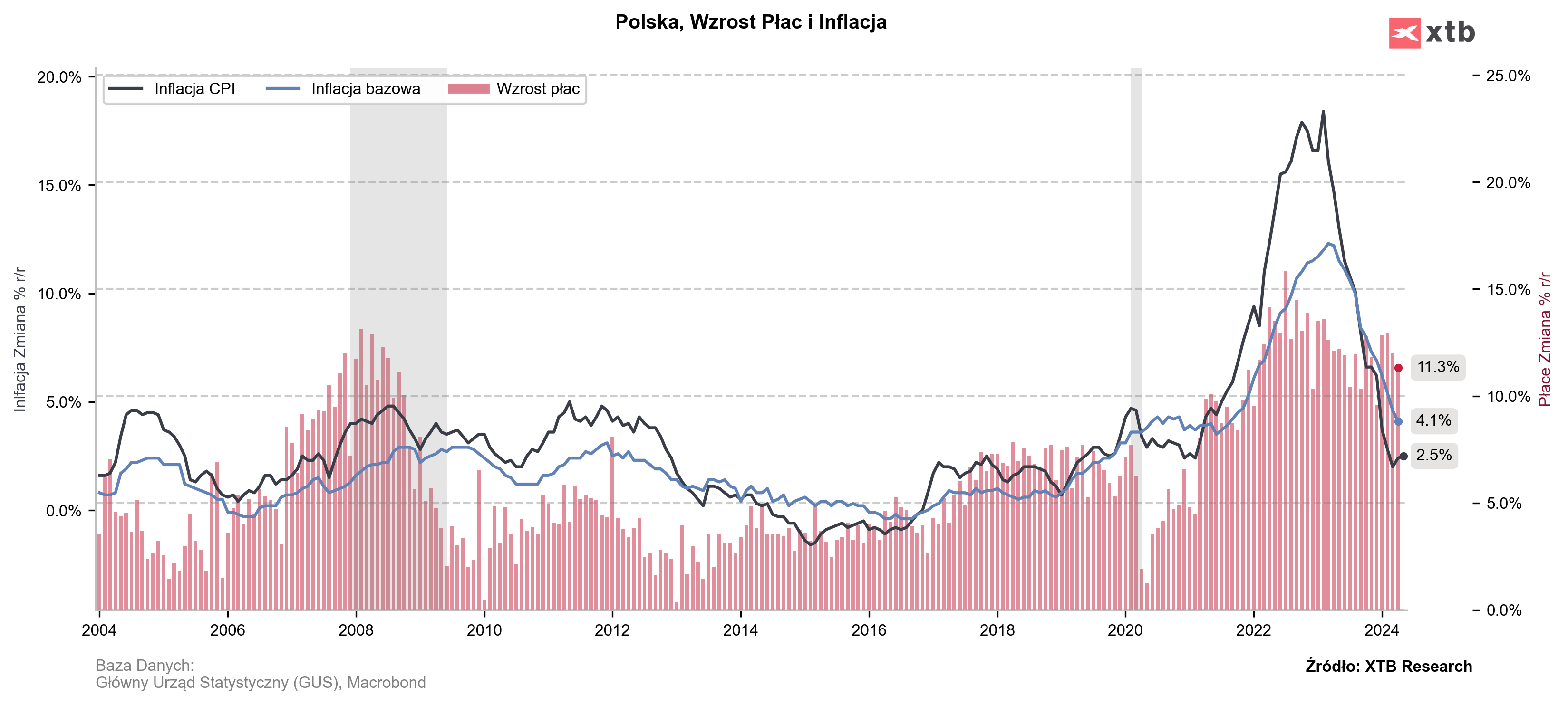 Inflacja CPI z Polski: Obecnie: 2,5% r/r. Prognozowano: 2,8% vs 2,4% poprzednio (Obecnie: 0,1%; prognozowano 0,4% m/m vs 1,1% m/m poprzednio).