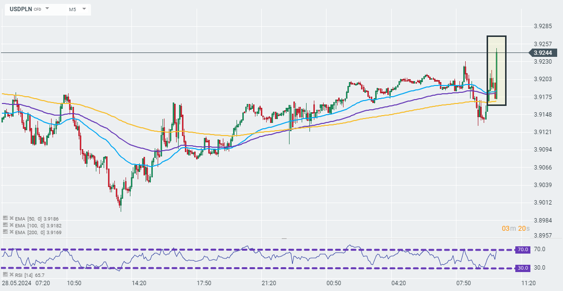W związku z tym dolar zyskuje do polskiego złotego na krótko po publikacji danych CPI.