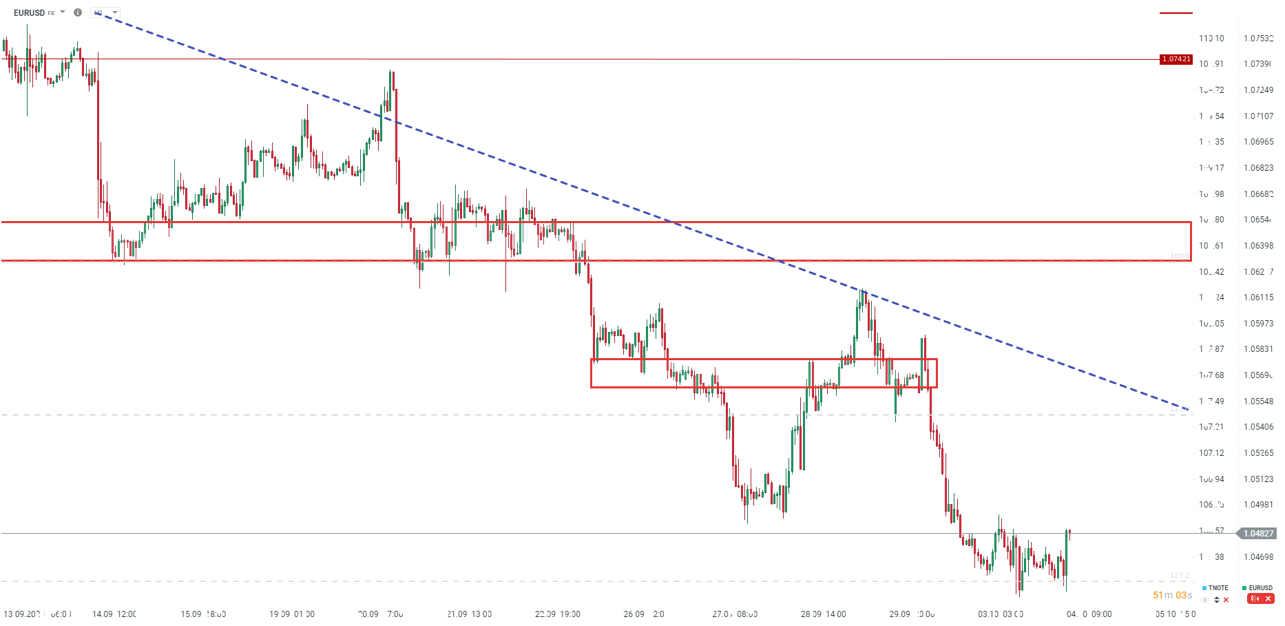 EURUSD zbliża się do poziomu 1,0500 po dobrych odczytach. Widać również ogólnie lekkie osłabienie dolara na rynku.