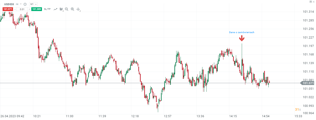 Indeks dolara (USDIDX) nieznacznie osłabił się po publikacji danych. Źródło: xStation5