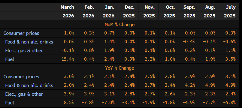 Zgodnie z oczekiwaniami rynku, niemal całość kontrybucji do wzrostu cen w ujęciu miesięcznym to ceny paliwa, którego sub-indeks wykazał wzrost o aż 15%. Ceny energii oraz żywności pozostały bez zmian.