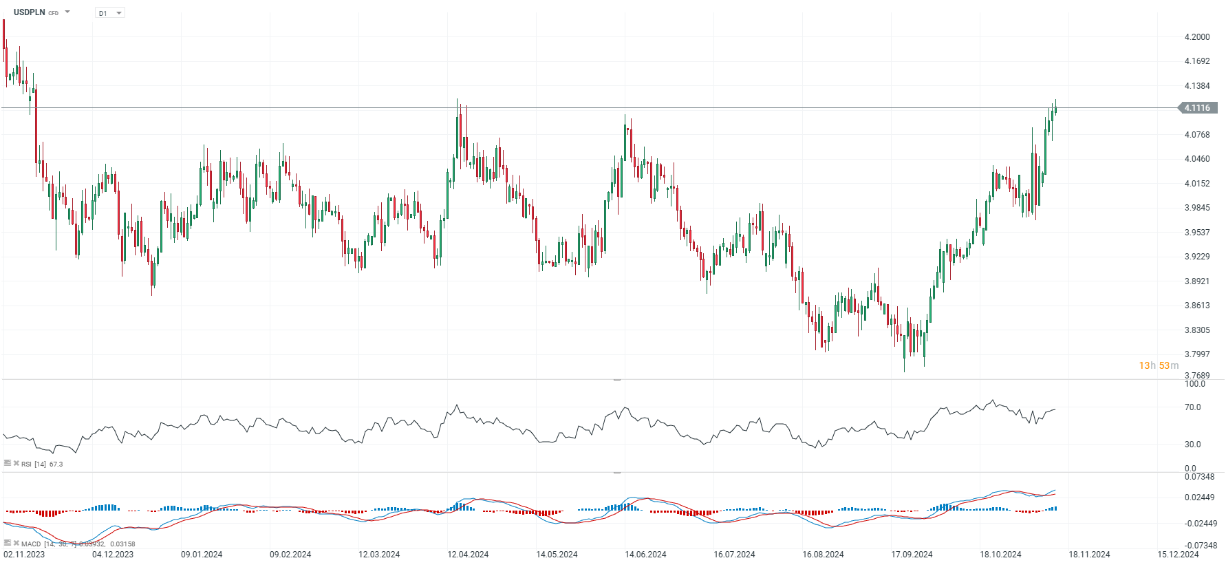 USDPLN notuje kolejną wzrostową sesję, napędzaną przez siłę dolara i słabość złotego, któremu ciąży wyprzedaż na eurodolarze.