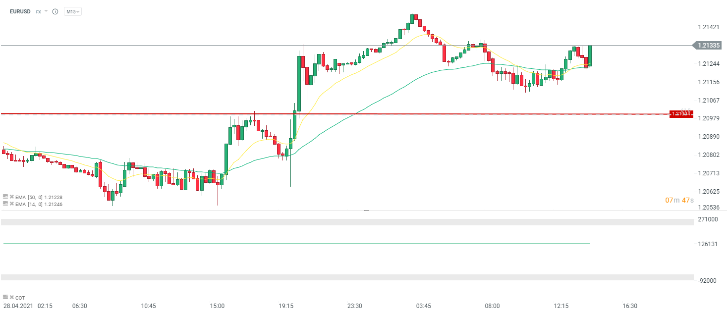 Trudno wskazać przyczynę wzrostu EURUSD. Można to traktować raczej jako ograniczone ryzyko na rynku ze względu na dobre wyniki gospodarcze z USA. Z drugiej strony oczywiście minimalne rozczarowanie też może wpływać na słabość dolara. Źródło: xStation5