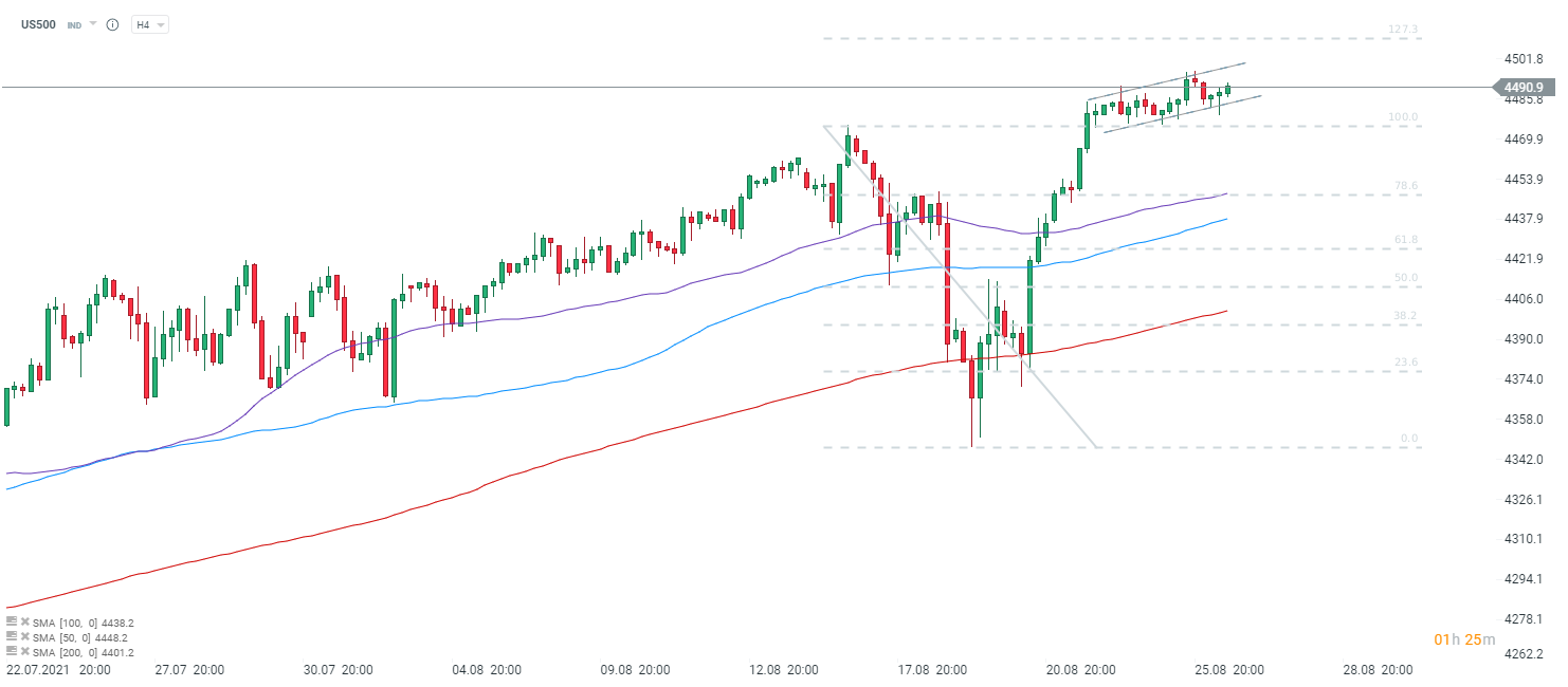 Dane nie mają wpływu na rynek. Obserwujemy odbicie na S&P 500 po spadku z początku dzisiejszego dnia na kontraktach (od godziny 00:00). Źródło: xStation5