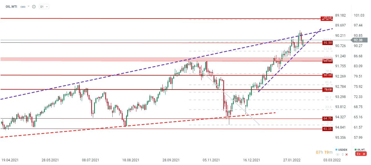 Ropa rośnie pomimo wzrostu zapasów ropy. Przekroczenie poziomu 91,50 USD jest kluczowe dla byków. Źródło: xStation5