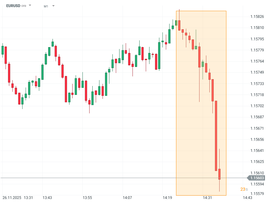 W połączeniu ze spadkowym odczytem bezrobocia, rynek wycenia dane jako stabilne/prowzrostowe. Ogranicza to presje na FOMC by ciąć stopy w Grudniu co w pierwszej kolejności wspiera dolara.