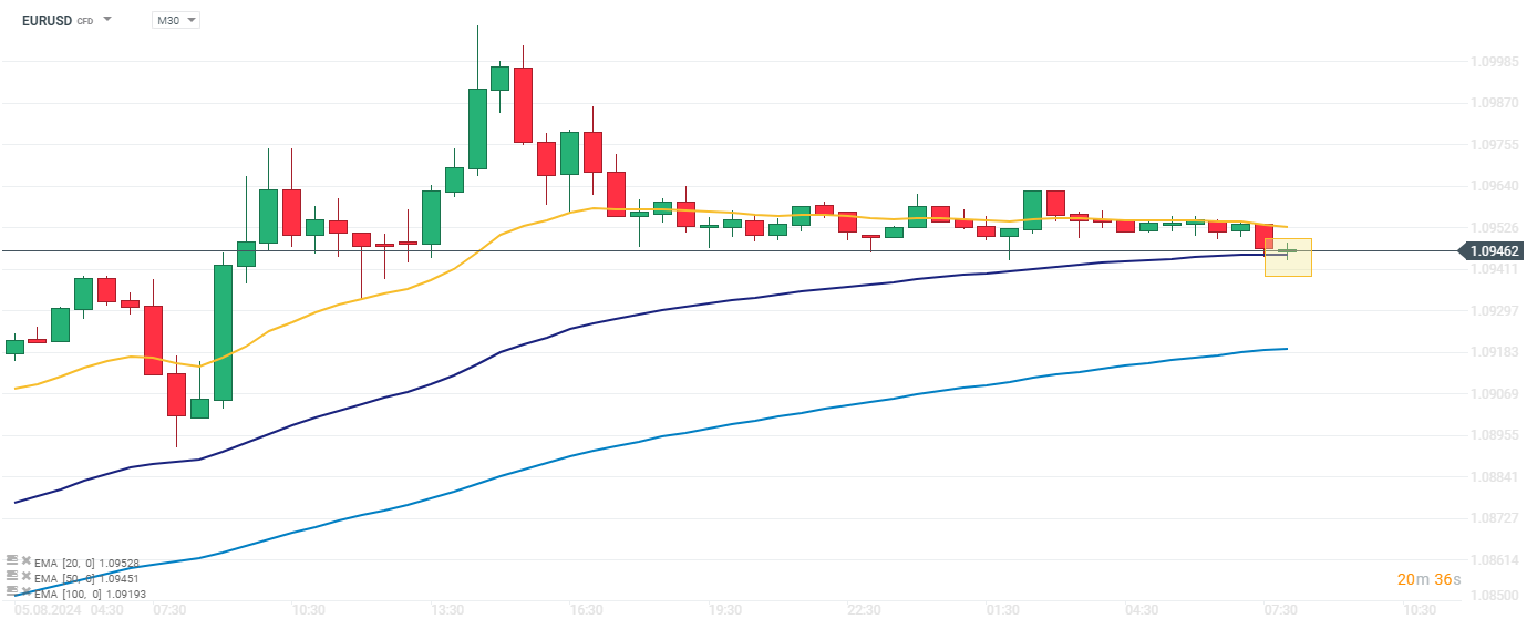 Zamówienia w przemyśle okazały się wyższe niż oczekiwano, co wskazuje na lepszy od prognoz stan niemieckiego przemysłu. Na rynkach nie widać jednak znacznej reakcji na dane. EURUSD lekko spadło poniżej strefy konsolidacji, w jakiej znajduje się od wczorajszego wieczora, jednak ruch ten pozostaje marginalny.