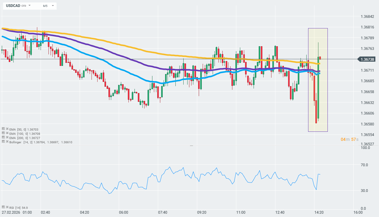 Styczniowe ceny producentów w USA (PPI) wzrosły o 2,9% r/r, przewyższając oczekiwania 2,6%, oraz o 0,5% m/m wobec prognozowanych 0,3%, co wskazuje na silniejszą niż zakładano presję inflacyjną na poziomie producenckim. Kanadyjska gospodarka skurczyła się w IV kw. o 0,6% w tempie annualizowanym, znacznie gorzej od szacunków -0,2%, potwierdzając pogłębiające się spowolnienie gospodarcze.