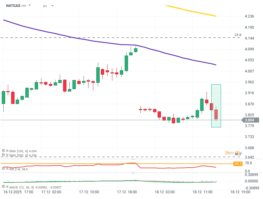 Odczyt o zapasach gazu wykazał wartość minimalnie mniejszą niż ta wskazana przez rynek, oznacza to że popyt został w niewielkim stopniu przeszacowany.