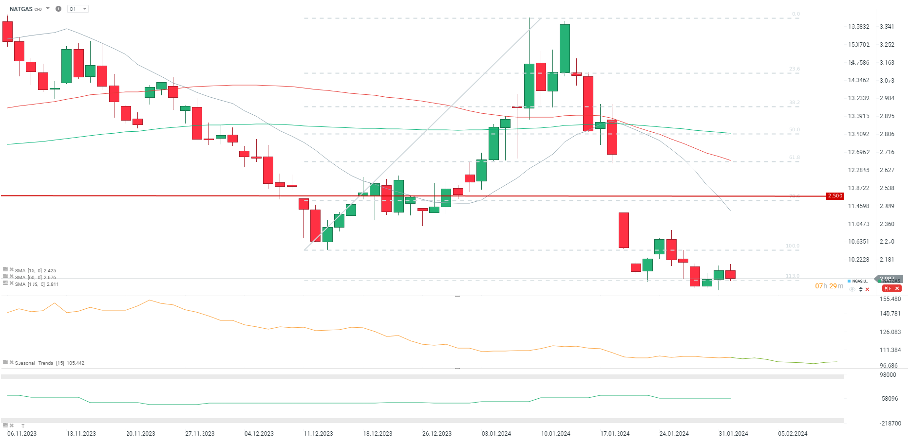 Zapasy gazu: -197 bcf (oczekiwano: -202 bcf; poprzednio: -326 bcf)