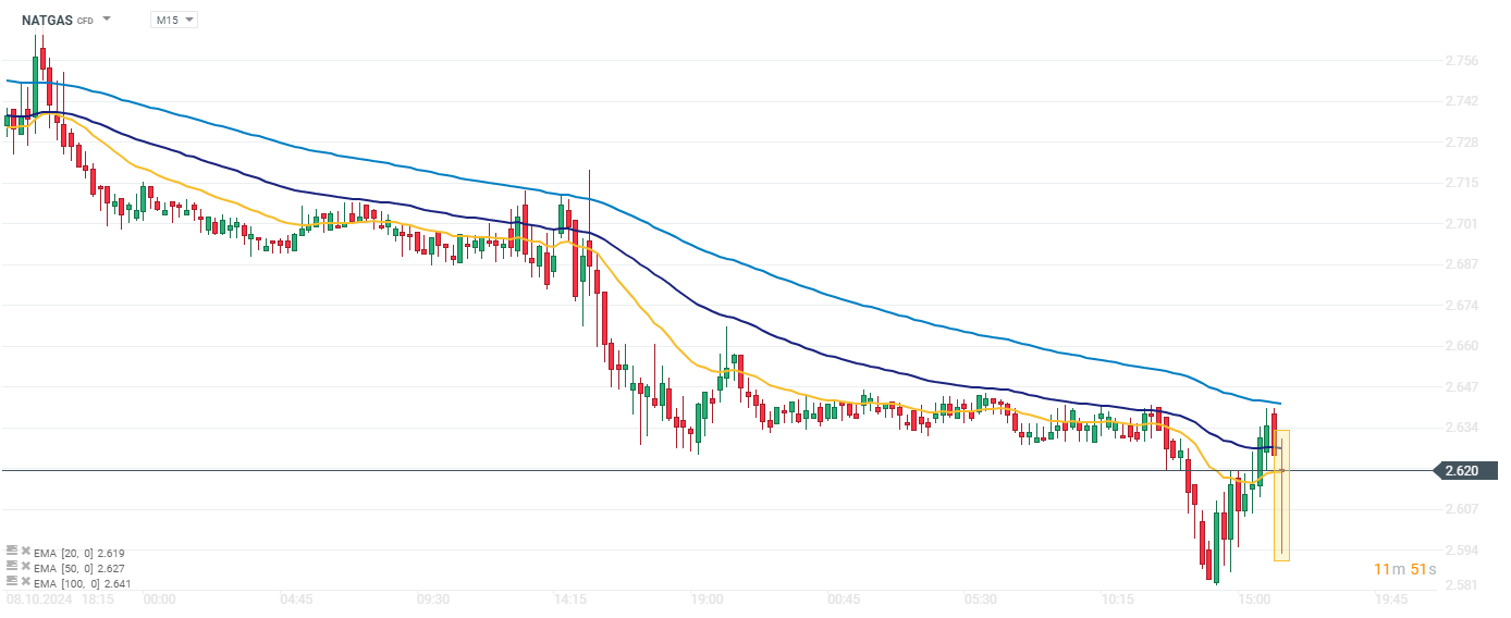 Zapasy gazu okazały się wyższe niż przewidywano. W pierwszej reakcji na dane notowania kontraktu na gas odnotowały w szczytowym momencie ponad 1,2% spadek.