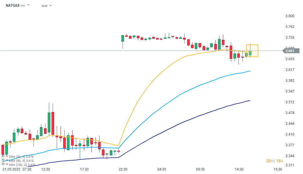 Dane EIA okazały się zgodne z oczekiwaniami, co sprawia, że na notowaniach kontraktów na gaz nie widzimy wyraźnych ruchów. Po dzisiejszym rolowaniu cena kontraktów pozostaje w korytarzu 3,65 - 3,73.