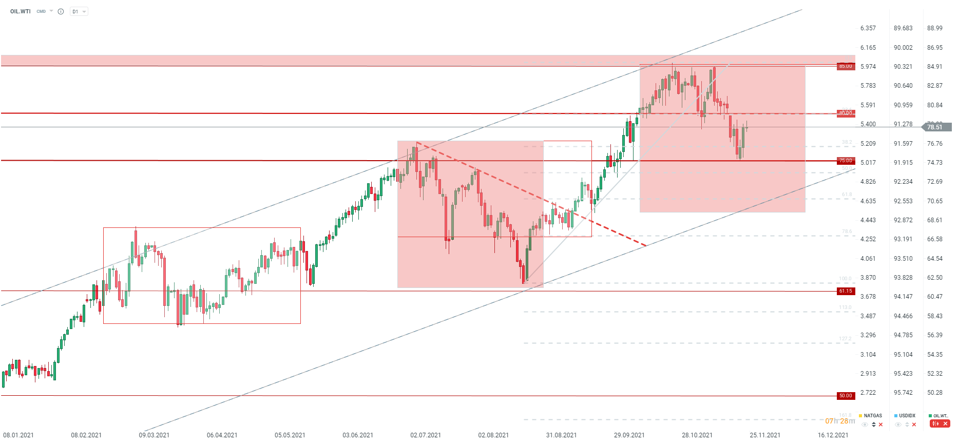 Raport API wskazywał na większy przyrost zapasów. Ropa odbija nieco w ostatnich minutach, choć nastroje są dzisiaj bardzo mieszane. Kluczowy opór to okolice poziomu 80 USD za baryłkę ropy WTI.