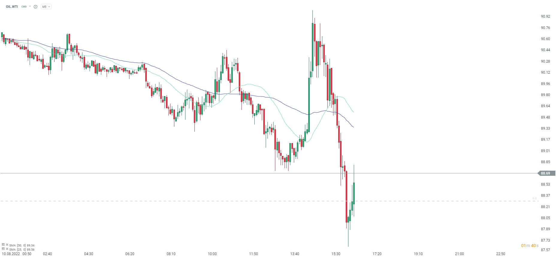 Zapasy ropy: 5,5 mln brk (oczekiwano: 0,215 mln brk; poprzednio: 4,5 mln brk)