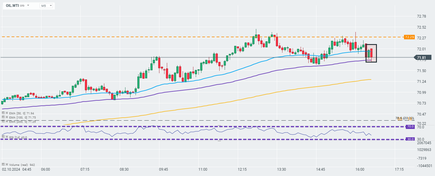 Mimo zaskoczenia danymi, ropa WTI nie odnotowuje nadmiernej reakcji rynkowej. Co ciekawe, dane API wskazywały, że mimo niższej skali spadku, i tak będzie ona wynosiła 1,460 mln baryłek.