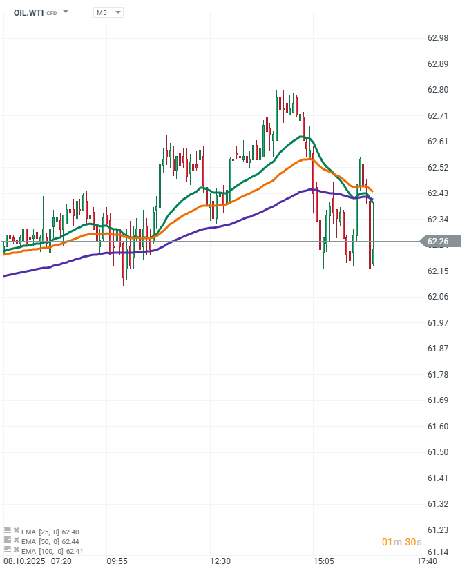 O 16:30 opublikowano dane o zapasach paliw w USA. Zapas ropy wzrósł mocniej niż oczekiwano (+3,72 mln baryłek), co zwykle obniża ceny. Jednak zapasy benzyny i destylatów spadły znacznie bardziej niż prognozy, co wskazuje na rosnący popyt na produkty rafinowane. To sprawia, że mimo wzrostu ropy, ceny surowca nieznacznie rosną, bo rynek koncentruje się na silnym popycie końcowym.